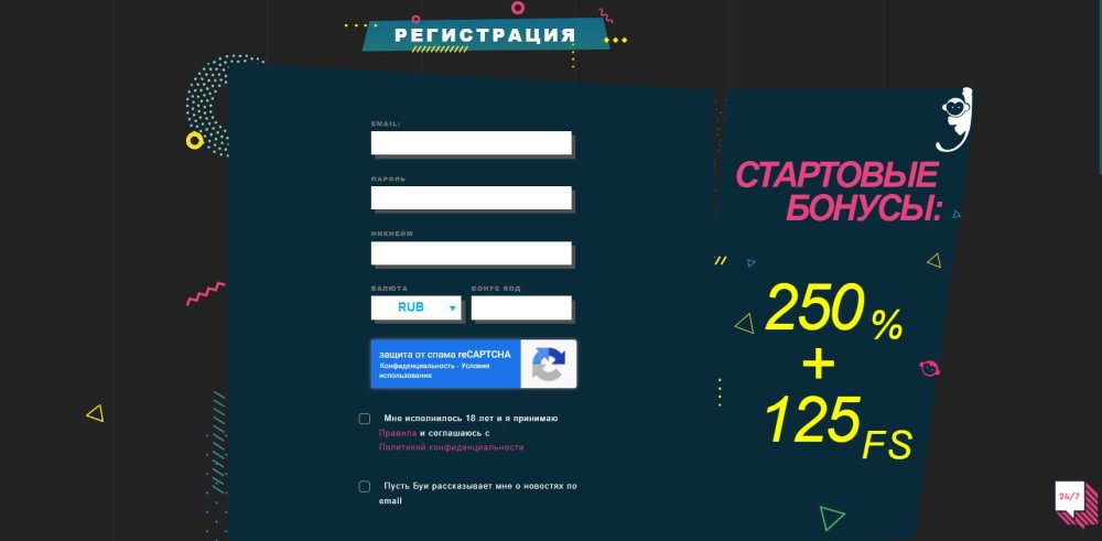 На завершающем этапе будущему пользователю онлайн-казино Буй, нужно подтвердить совершеннолетие, а также что новый аккаунт это единственная учетная запись на данной площадке.